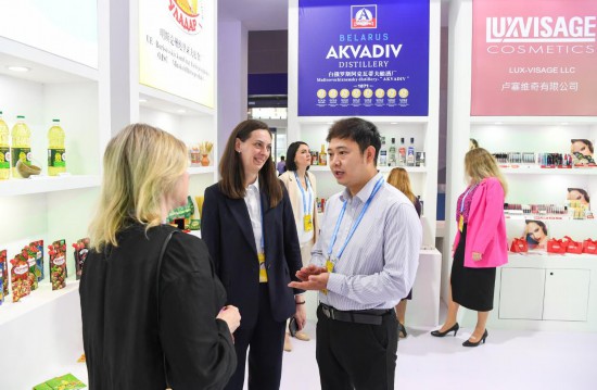 5月23日,中外嘉宾在西洽会主宾国白俄罗斯国家馆参观。新华社记者王全超 摄